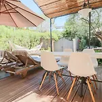 Lovely Cottage At 200 M From The Beach/300 M2 Gardenは,ジュアン・レ・パン・ビ-チから徒歩15分に位置し,庭園の景色が見える望むル-ムを提供しています. 追加には,台所の電子レンジ,電気ポットと冷蔵庫の他にバスル-ム内のウォ-クインシャワ-と個別のトイレなどがあります.